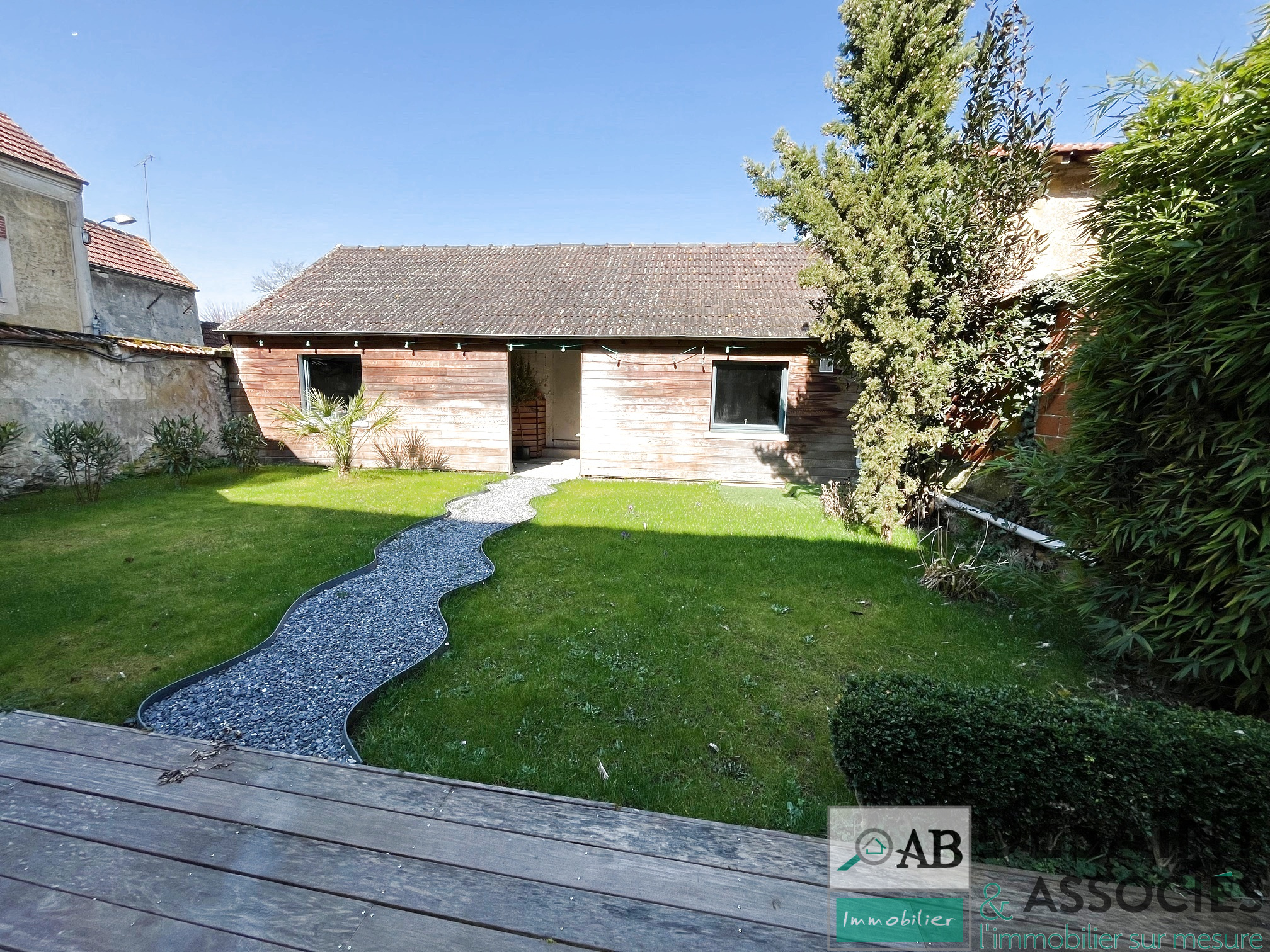 A l'extérieur : terrasse, jardin, dépendance de 65 m² le tout sur un terrain de 480 m².