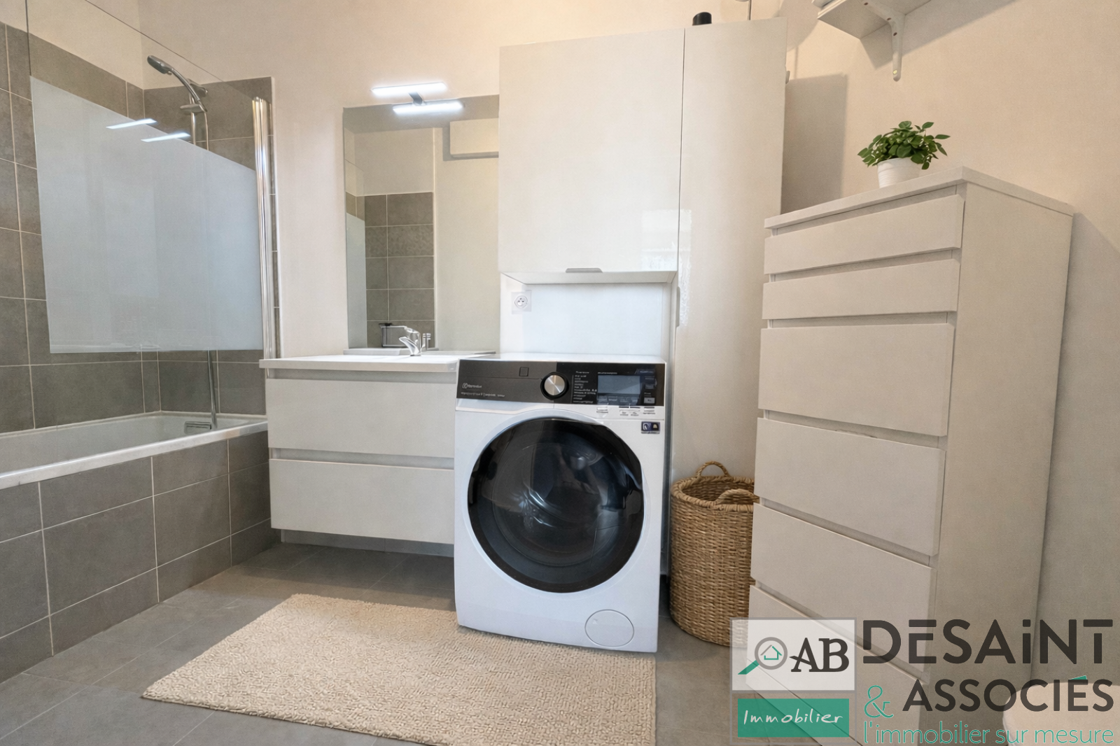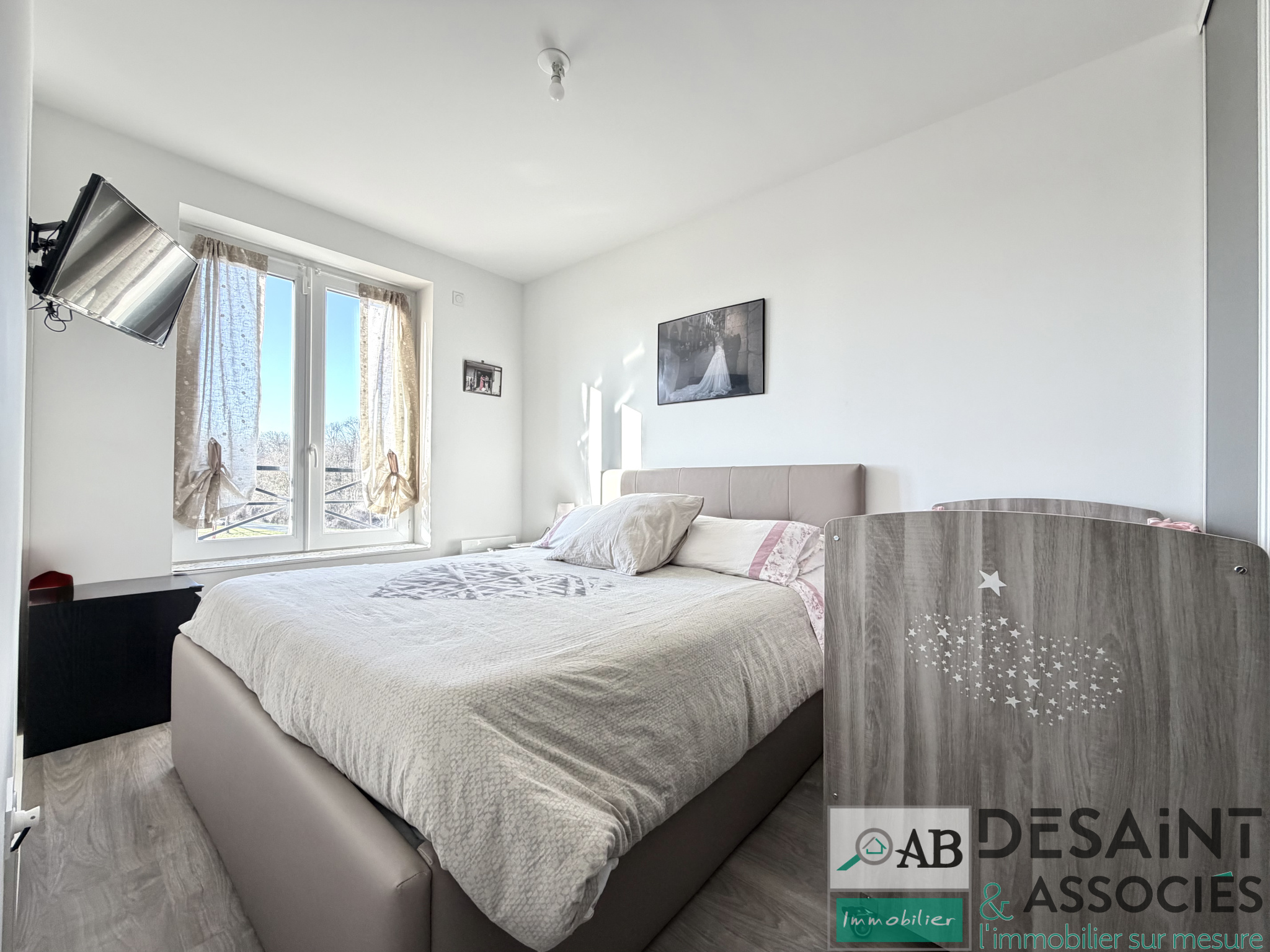 Entrée avec cellier indépendant, wc avec lave-mains, séjour sur cuisine ouverte, aménagée et équipée. A l'étage, un palier dessert 2 chambres avec rangements et une salle de bains spacieuse avec wc.