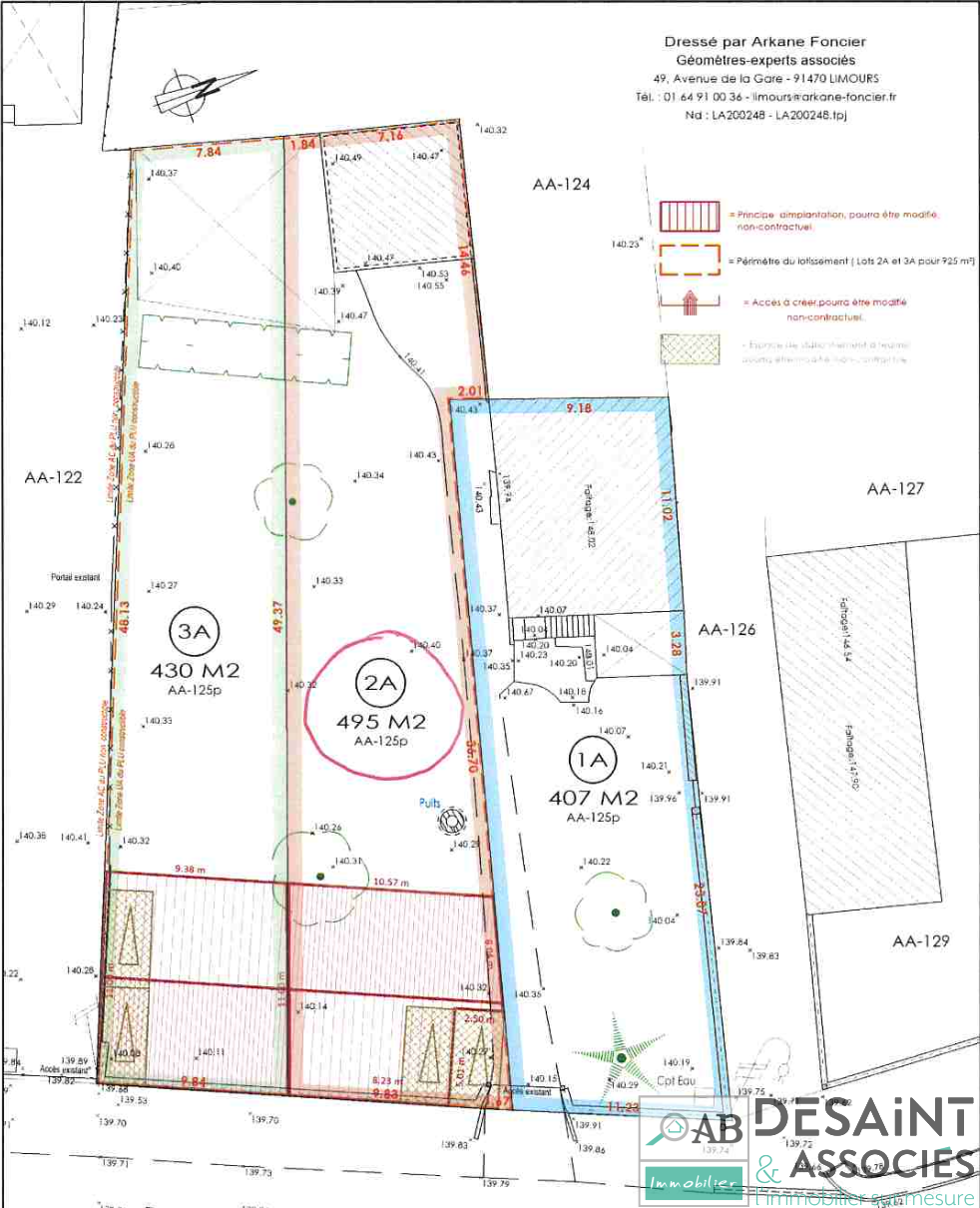 Façade de 9,83m. Superficie totale 495m2. Non viabilisé.