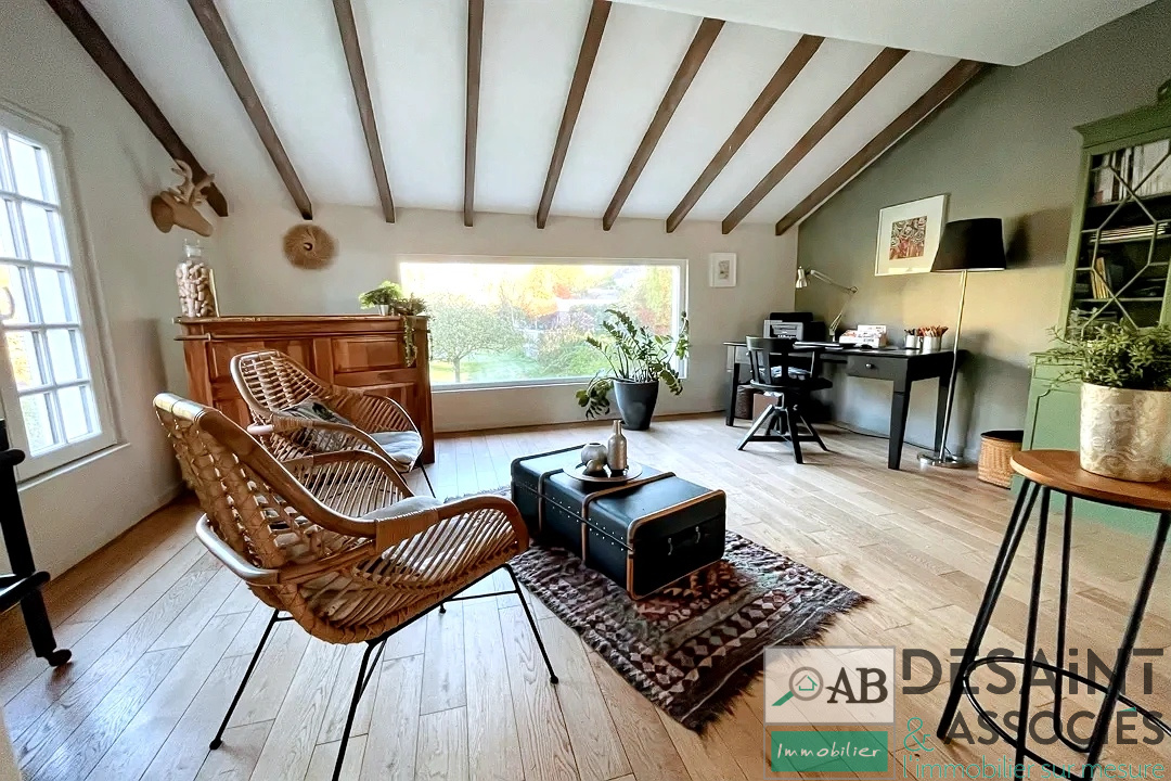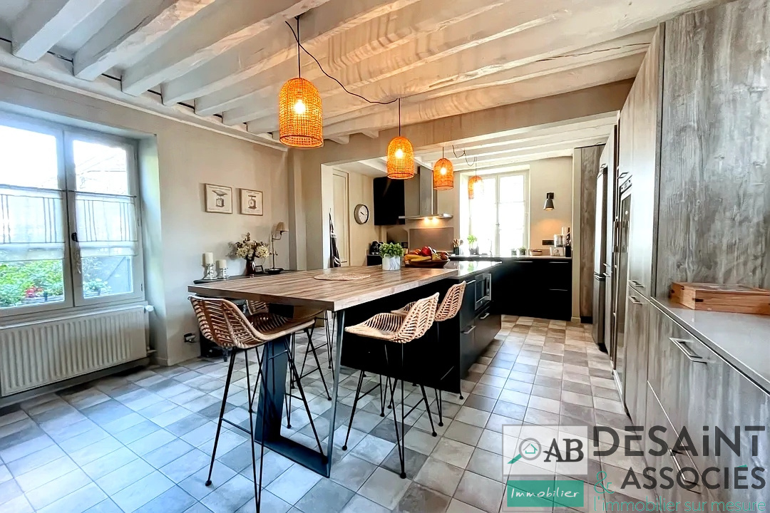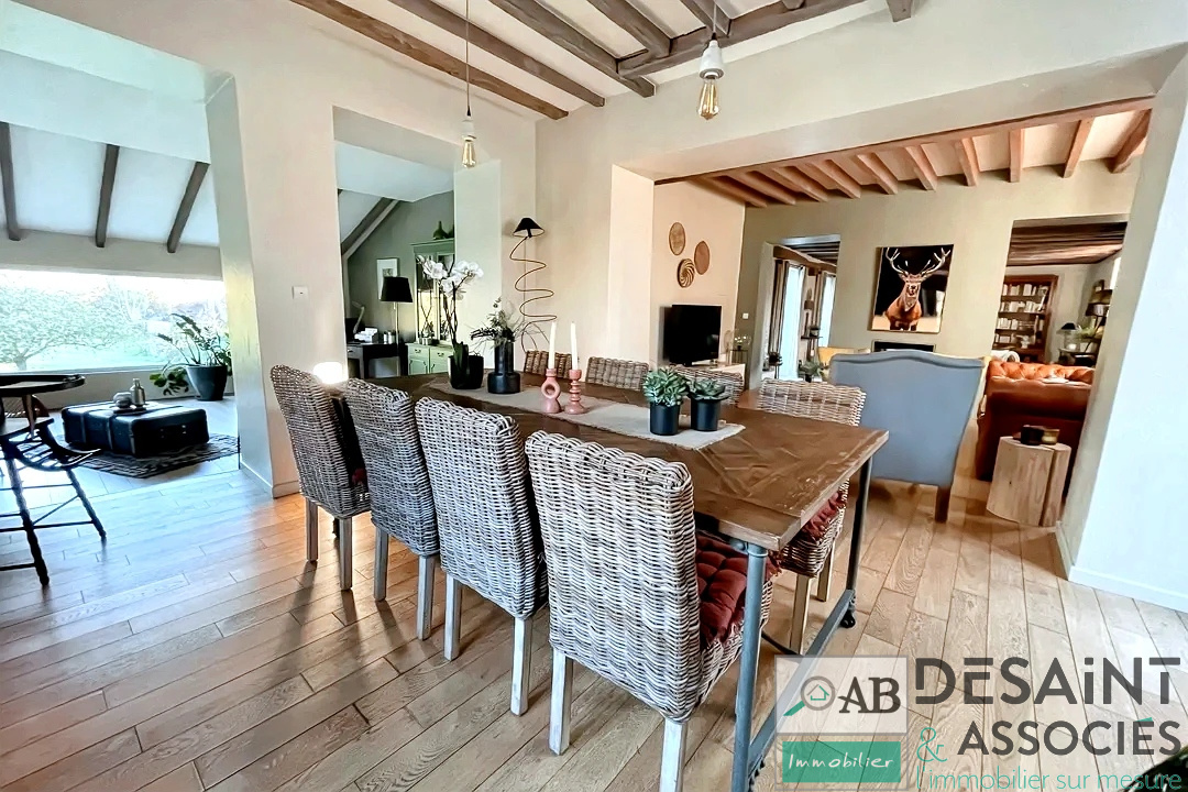 Mauperthuis, au calme, magnifique longère entierement rénovée comprenant: entrée, cuisine aménagée/équipée, séjour triple avec cheminée, buanderie et wc, 5 chambres dont 2 suites avec salle de bains ou salle d'eau. Attenant à la propriété: appartement type F2 avec cuisine, séjour, chambre et salle d'eau. Dependance, appenti, et cave. Terrain exposé Sud de 3153 m².