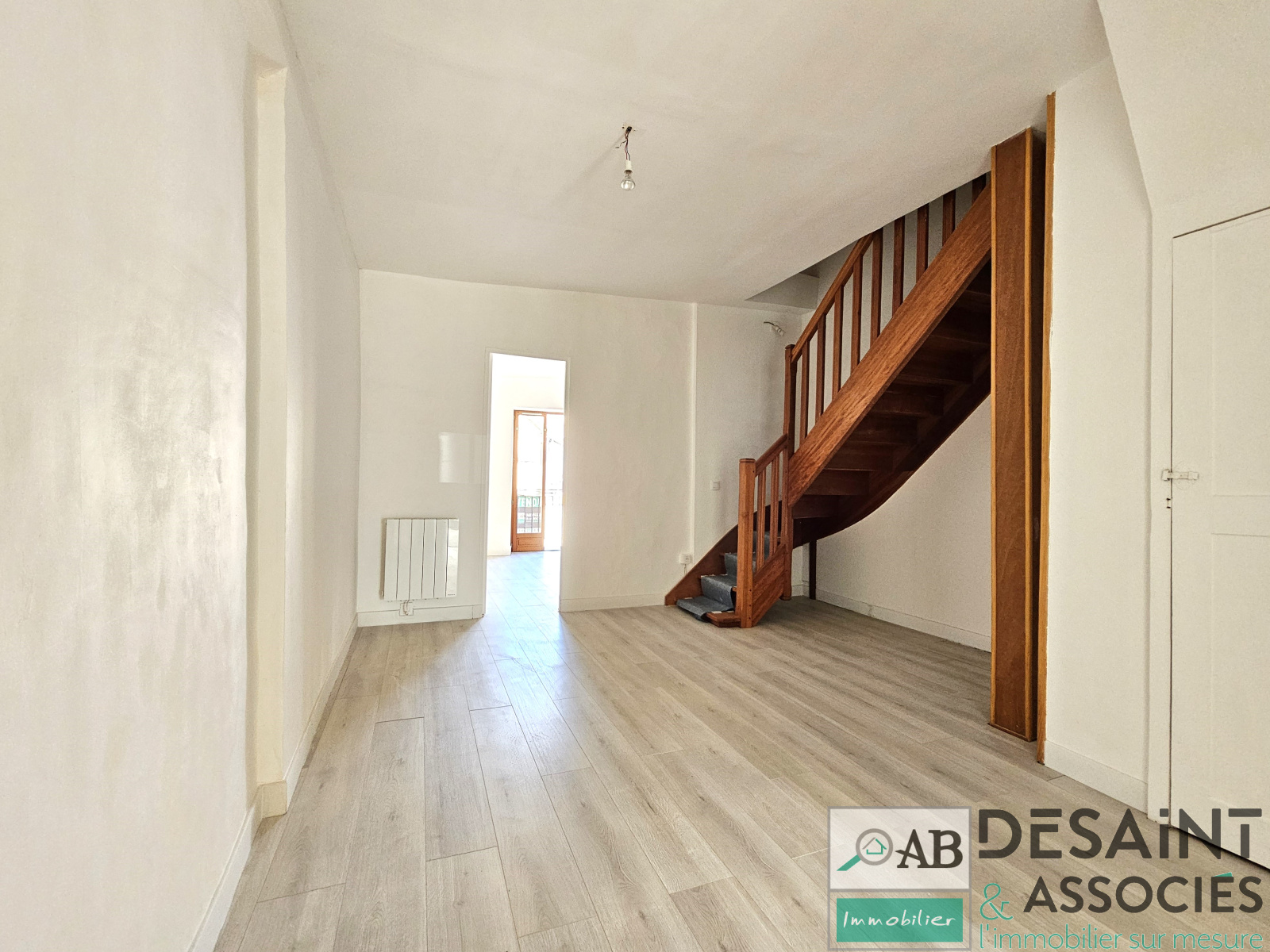 EXCLUSIVITE AB Immobilier à 7min de Faremoutiers, Maison de ville T5 entiérement rénovée de 115m² idéalement situé au centre-ville de Touquin proche des commerces, écoles, à seulement 30 minutes en bus de la gare de Chessy. Comprenant au rez-de-chaussée une piéce de vie de 41m² salon/séjour et cuisine US avec accès sur une terrasse et un WC.