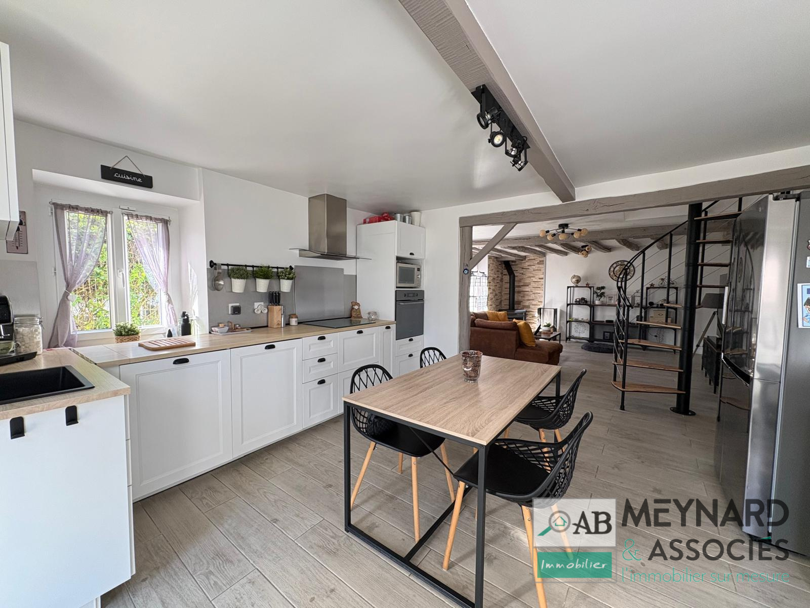 Au rdc : une cuisine ouverte équipée et un salon qui composent la pièce de vie, une salle d’eau avec WC, possibilité d’une troisième chambre