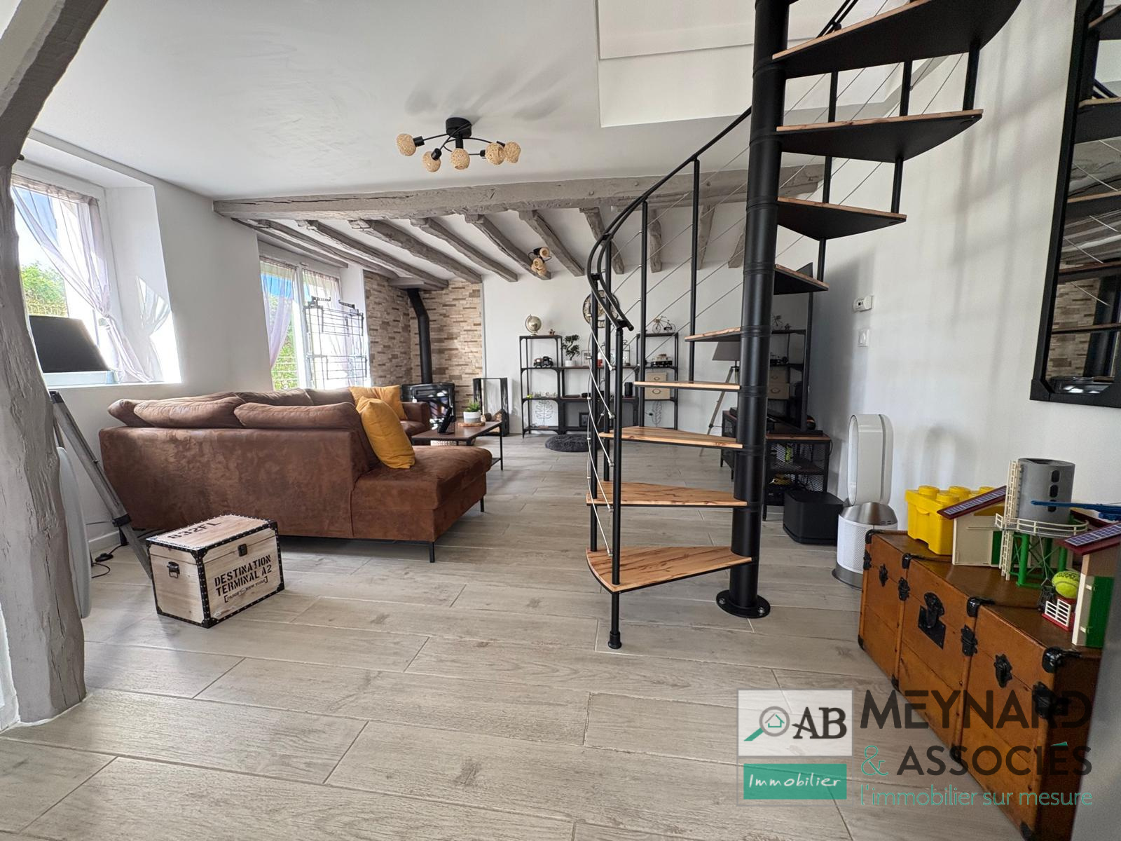 Elle comprend une surface habitable de 66,70 m2 et 94,18 m2 au sol, avec une belle pièce à vivre de 38.22 m2 et son poêle